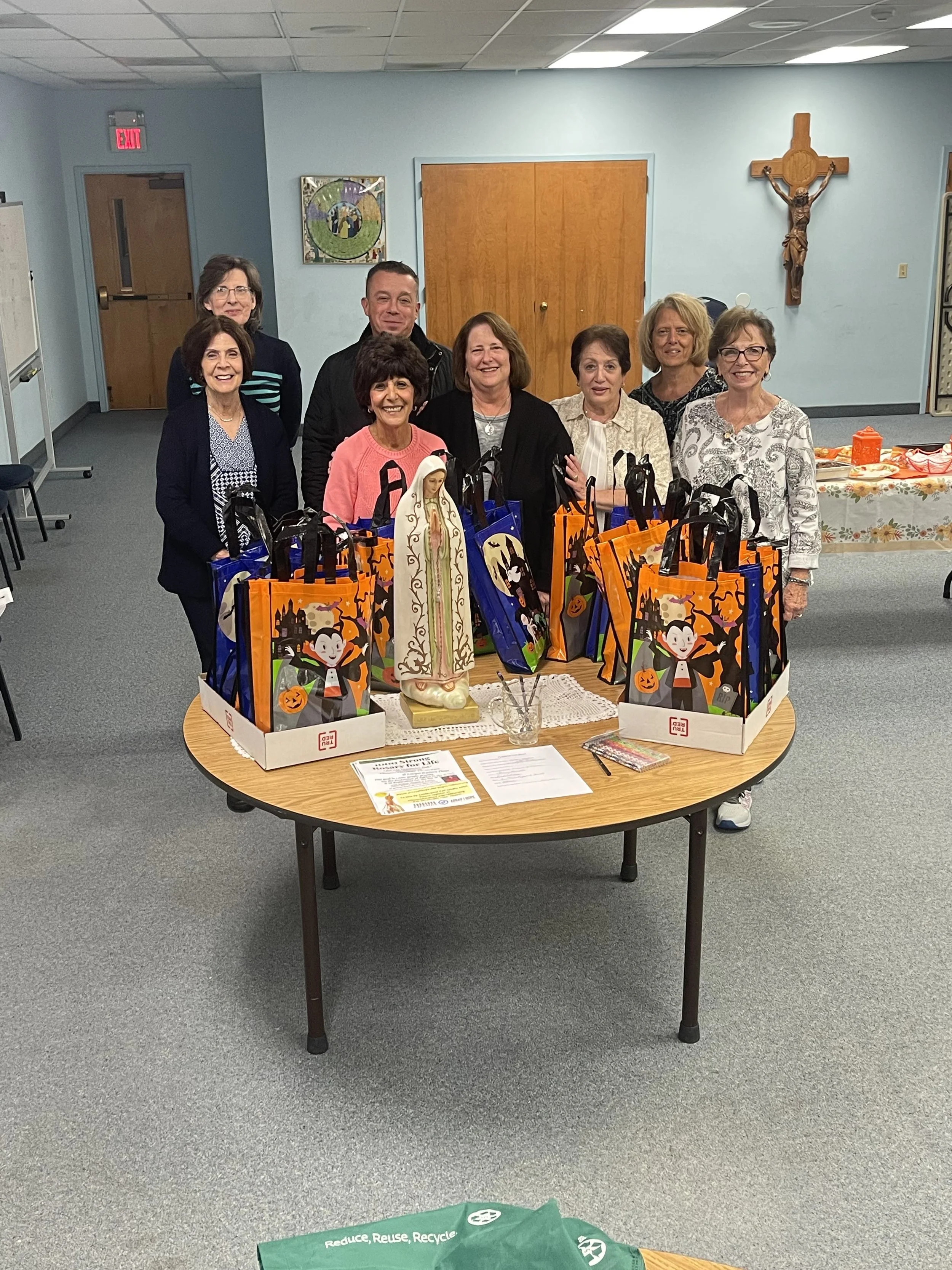 The Parish Center tables were filled with treats supplied by each of the Rosarians, which included the bags, juice boxes, fruit cups, fruit snacks, pencils, pens, and an assortment of candy.